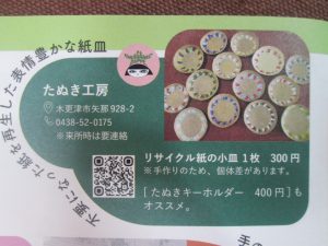 木更津市観光協会推奨土産品が掲載された、木更津おみやげハンドBOOKに「リサイクル紙の小皿」が掲載されました。木更津市観光協会推奨土産品とは、味や品質、パッケージ、地域とのつながりを感じられるもの等を対象に、専門の審査を経て認定された品々です。木更津の銘菓、地酒、名産品の仲間入りを果たしました。