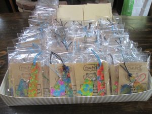 将棋大会の景品には、小中学生が伸びやかに成長されますように・・・との願いを込めて、お菓子の包装紙で織った折り鶴を入れて納めました。